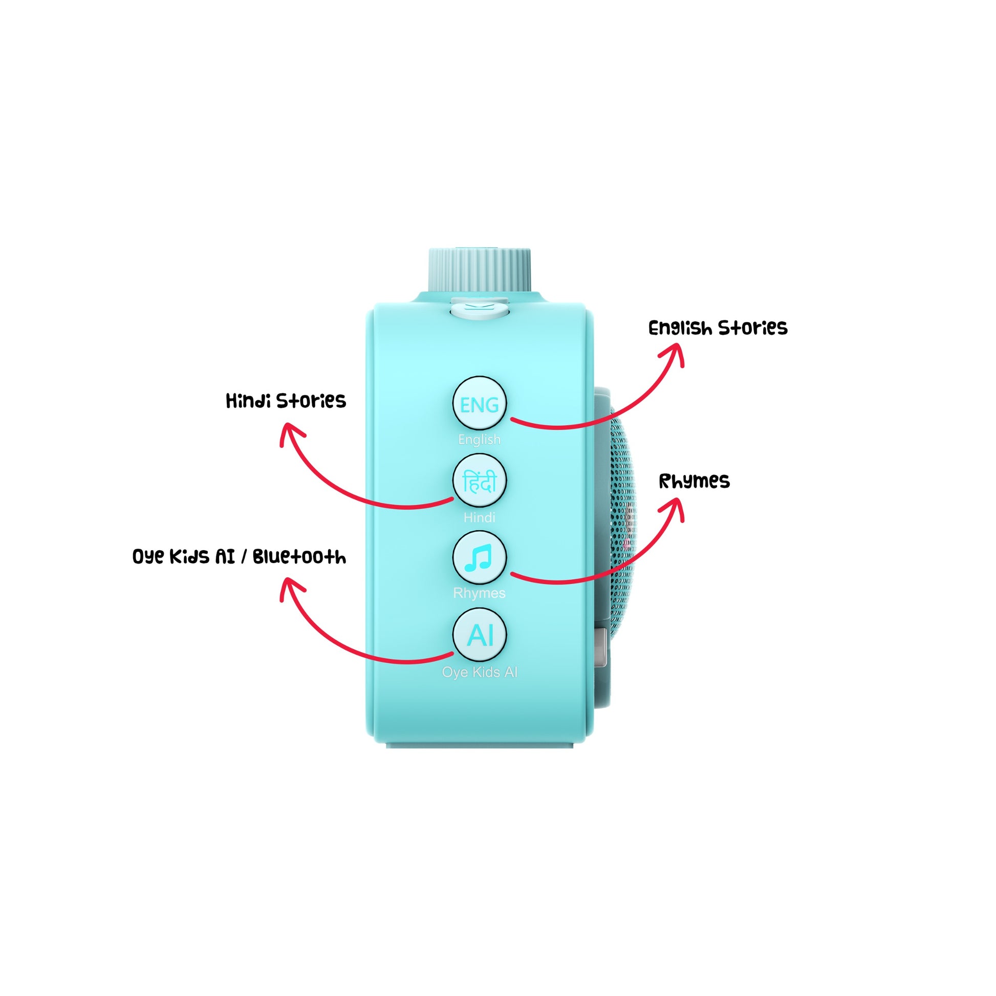 The Oye Kids Story Box is a screen-free, electronic learning and storytelling speaker designed for children aged 3 to 10 years. Packed with 1,000 preloaded stories in Hindi and English, it’s the perfect way to combine fun, imagination, and education — all in one adorable device.